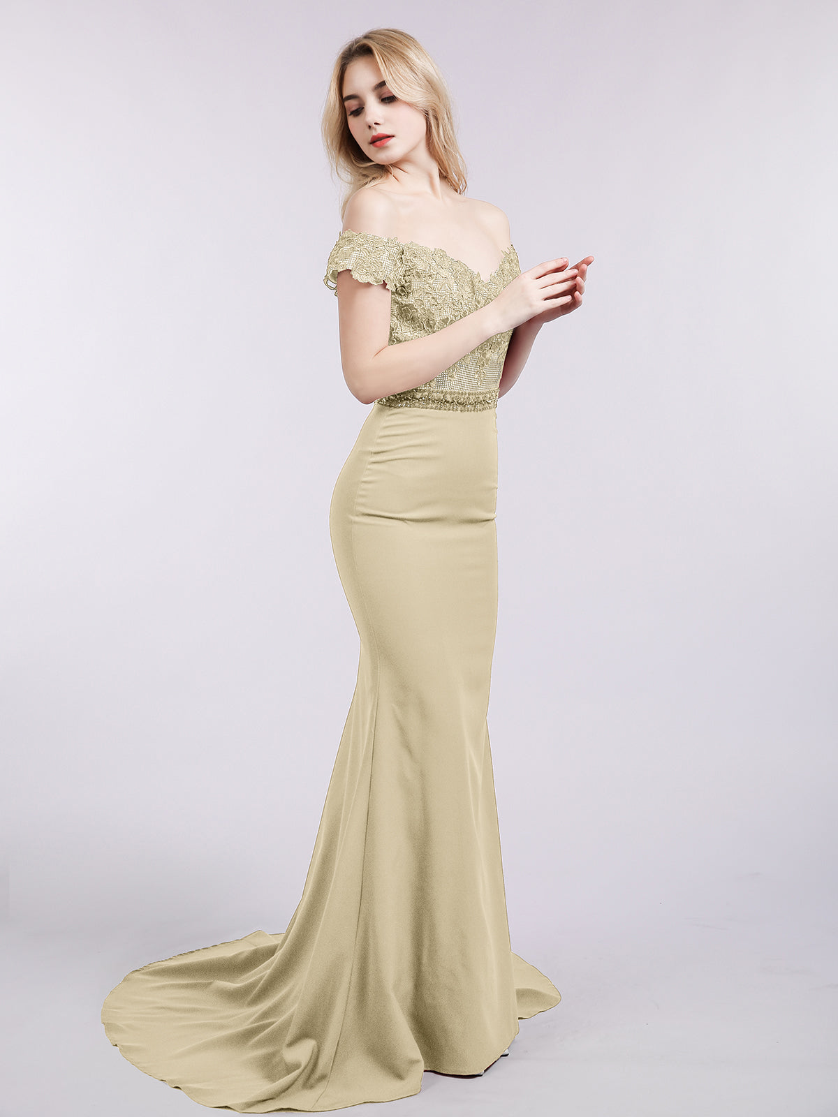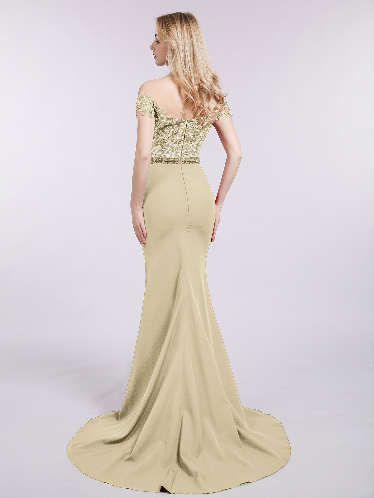 Off Shoulder Mermaid Gown with Train-Champagne