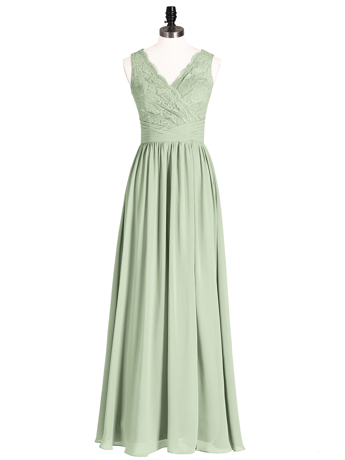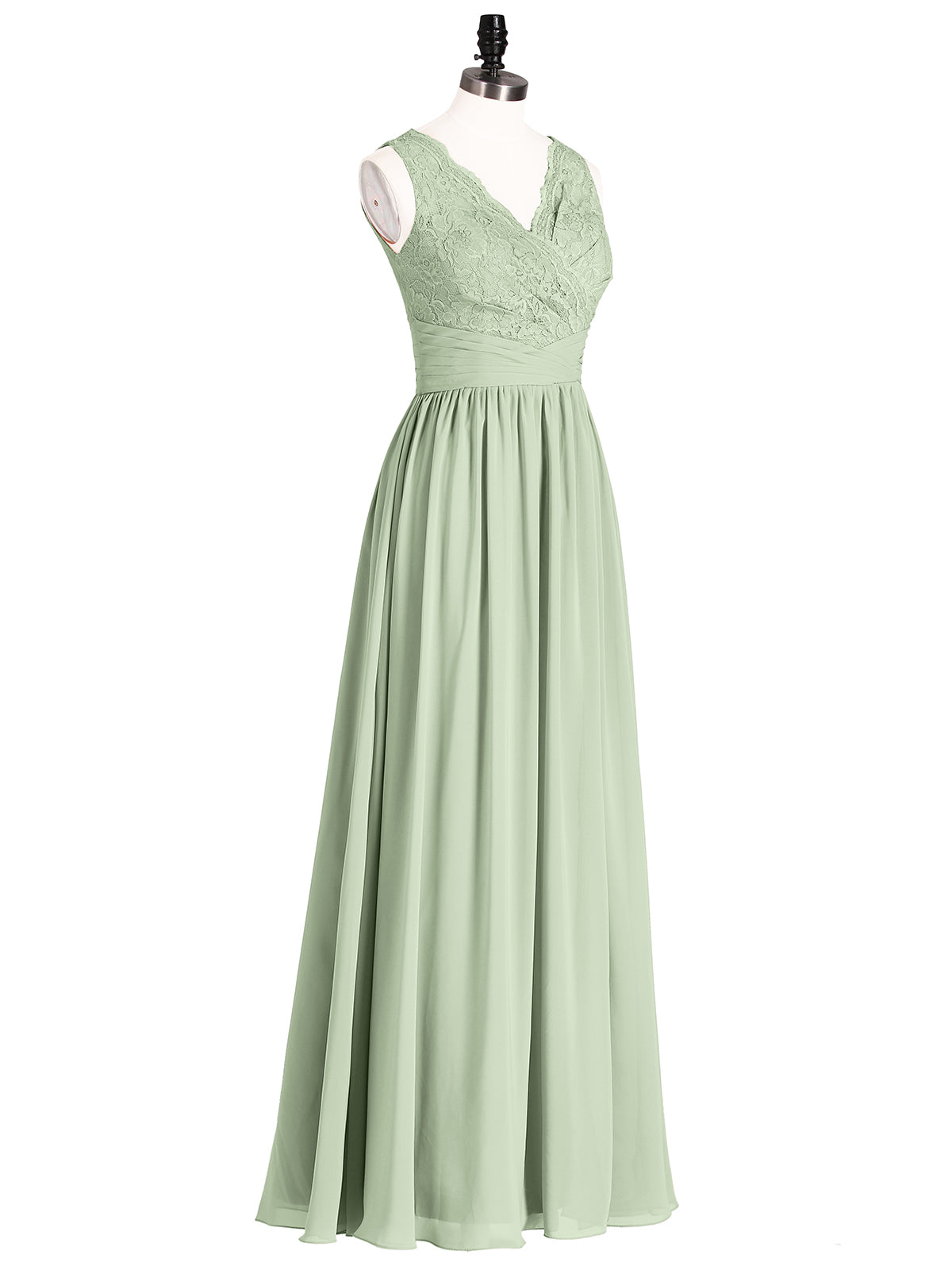 V Neck Chiffon And Lace Dress with Slit Dusty Sage Plus Size
