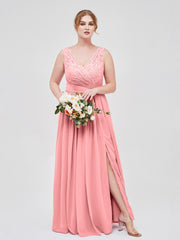 V Neck Chiffon And Lace Dress with Slit Flamingo Plus Size