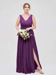 V Neck Chiffon And Lace Dress with Slit Grape Plus Size