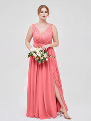 V Neck Chiffon And Lace Dress with Slit Watermelon Plus Size