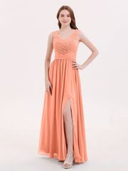 V Neck Chiffon And Lace Dress with Slit Sunset