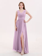 V Neck Chiffon And Lace Dress with Slit Wisteria