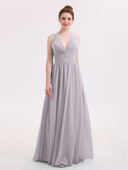 Halter V Neck Chiffon Bridesmaid Gown-Dusk