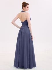 Halter V Neck Chiffon Bridesmaid Gown-Stormy