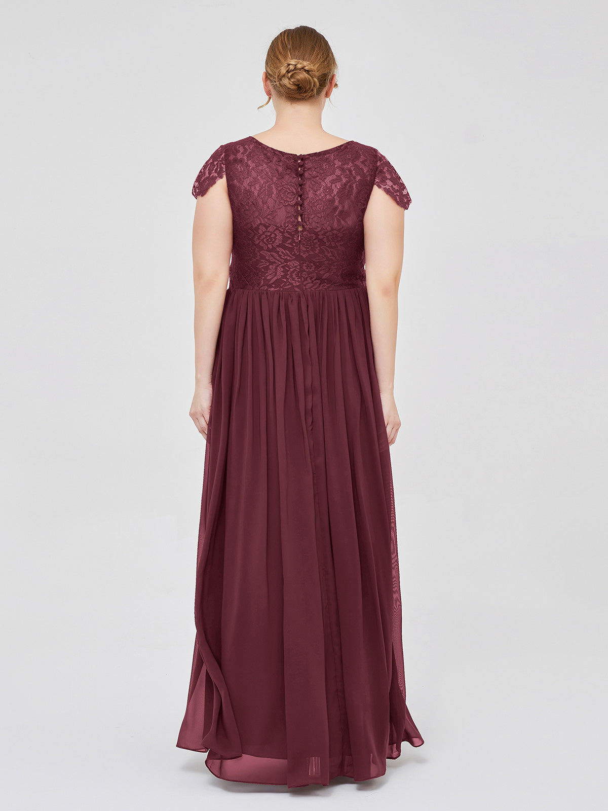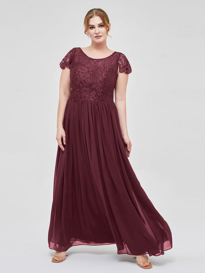 Long Bridesmaid Dresses with Cap Sleeves Cabernet Plus Size