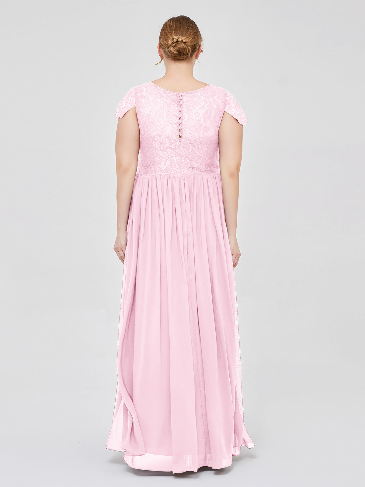 Long Bridesmaid Dresses with Cap Sleeves Candy Pink Plus Size