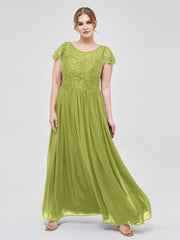 Long Bridesmaid Dresses with Cap Sleeves Clover Plus Size