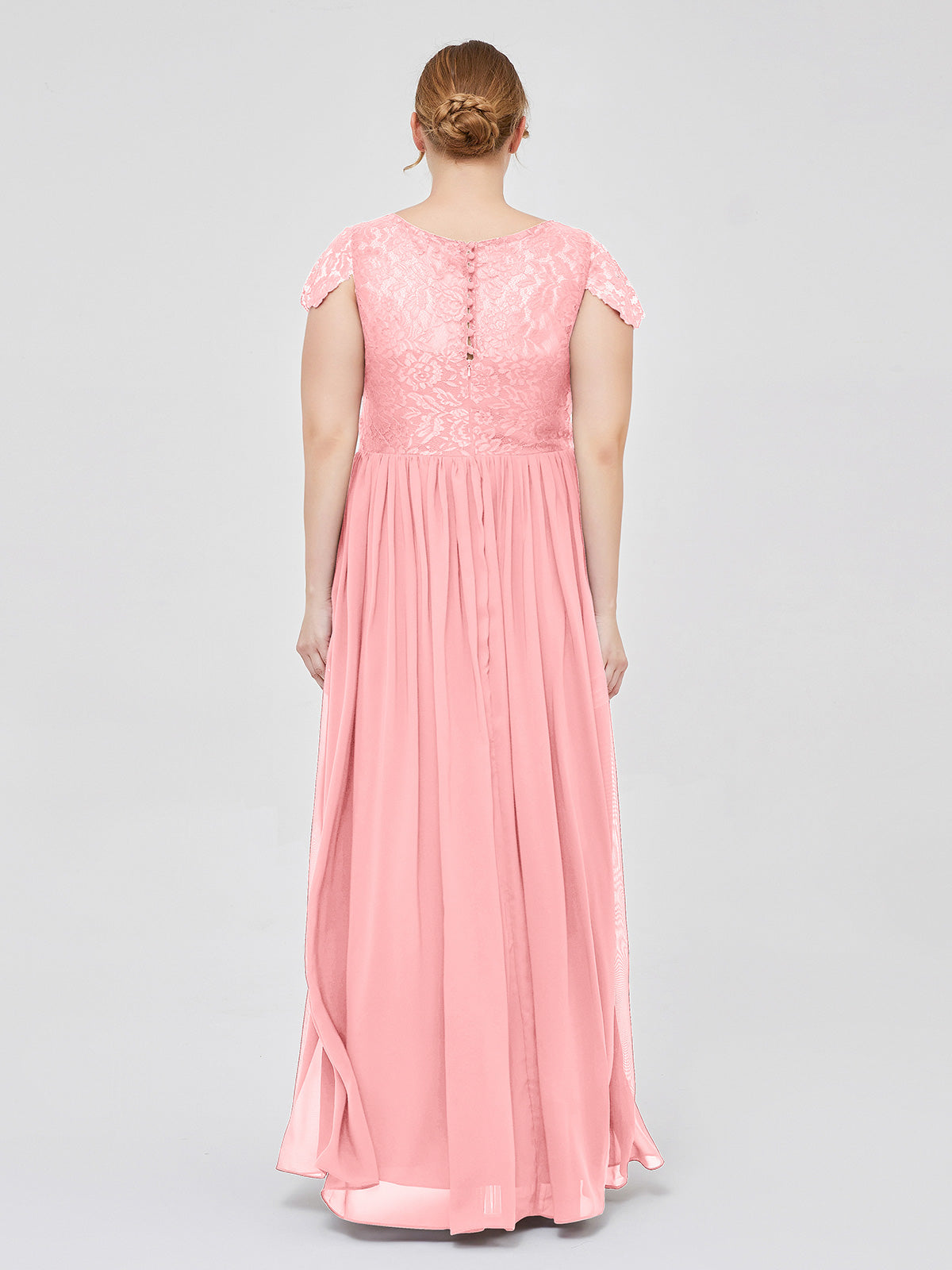 Long Bridesmaid Dresses with Cap Sleeves Flamingo Plus Size