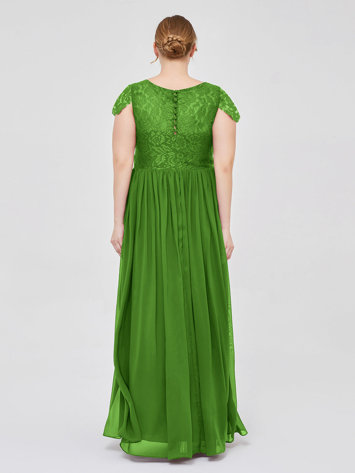 Long Bridesmaid Dresses with Cap Sleeves Moss Plus Size