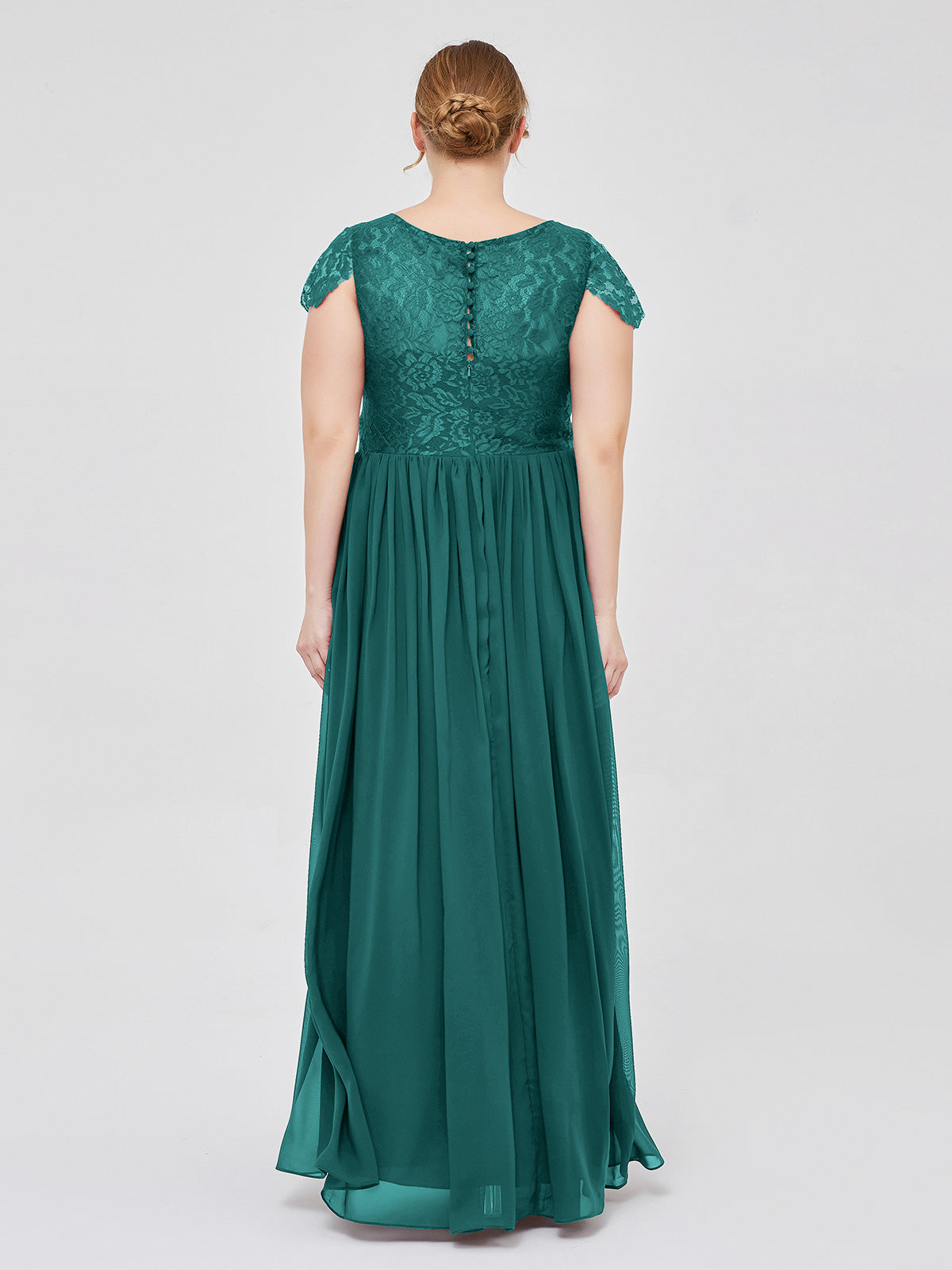 Long Bridesmaid Dresses with Cap Sleeves Peacock Plus Size
