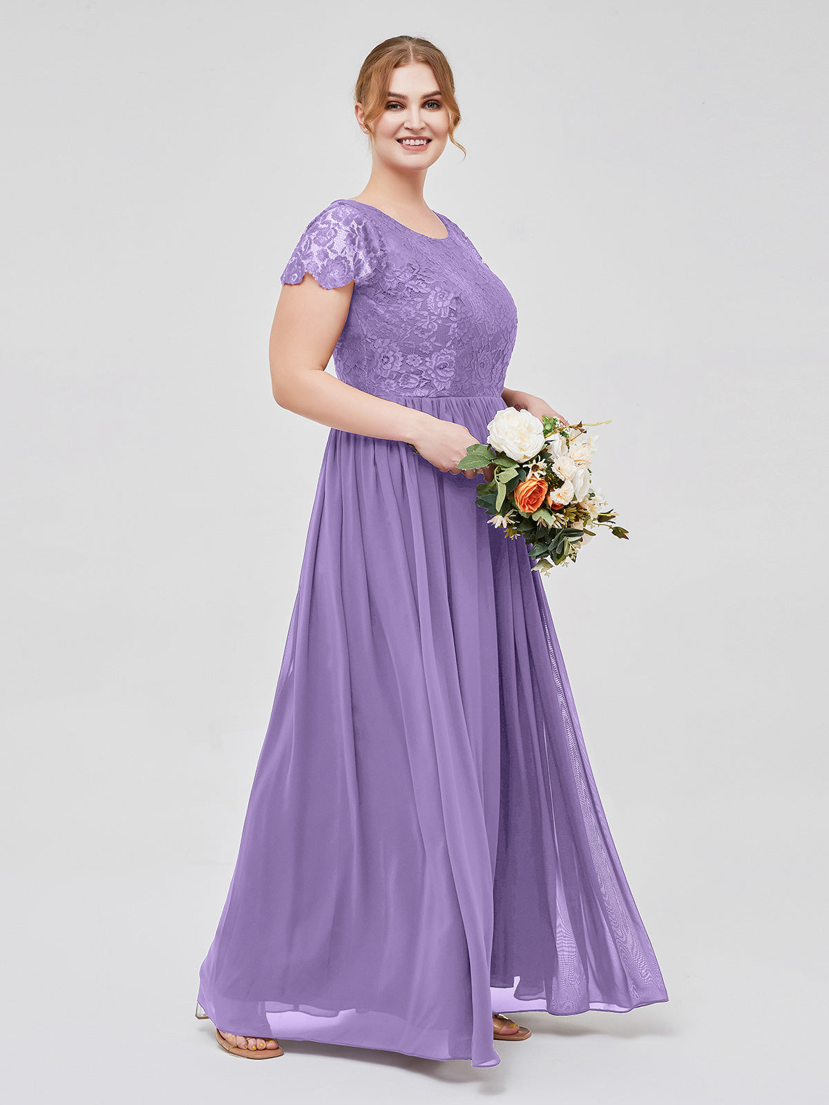 Long Bridesmaid Dresses with Cap Sleeves Tahiti Plus Size