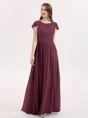 Long Bridesmaid Dresses with Cap Sleeves Cabernet