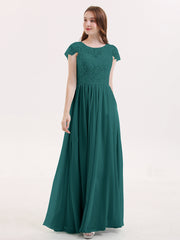 Long Bridesmaid Dresses with Cap Sleeves Peacock