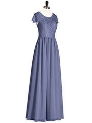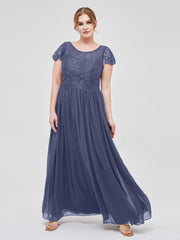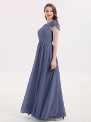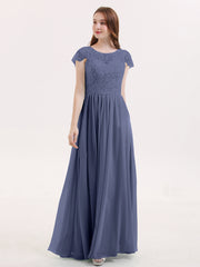 Long Bridesmaid Dresses with Cap Sleeves Stormy