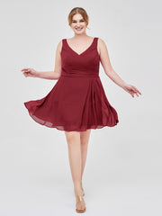 V Neck Chiffon Short Dress for Bridesmaids Burgundy Plus Size