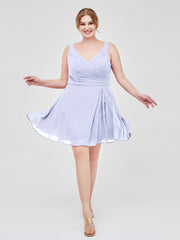 V Neck Chiffon Short Dress for Bridesmaids Lavender Plus Size