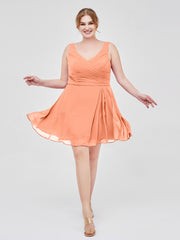 V Neck Chiffon Short Dress for Bridesmaids Papaya Plus Size