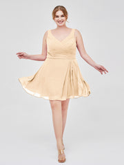 V Neck Chiffon Short Dress for Bridesmaids Peach Plus Size