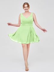 V Neck Chiffon Short Dress for Bridesmaids Sage Plus Size