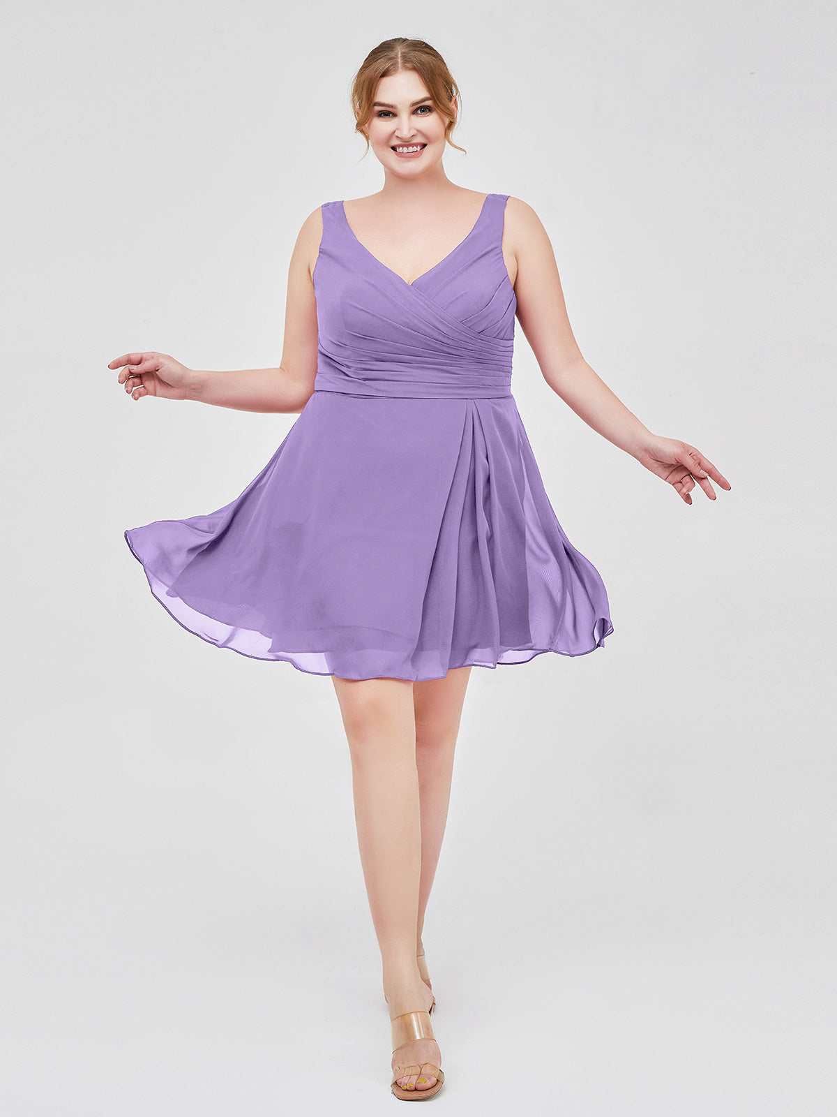 V Neck Chiffon Short Dress for Bridesmaids Tahiti Plus Size
