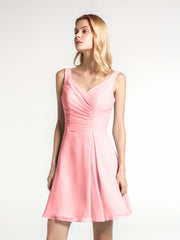 V Neck Chiffon Short Dress for Bridesmaids Flamingo