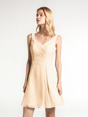 V Neck Chiffon Short Dress for Bridesmaids Peach