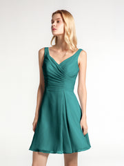 V Neck Chiffon Short Dress for Bridesmaids Peacock