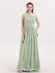 One Shoulder Chiffon and Lace Bridesmaid Dress-Dusty Sage