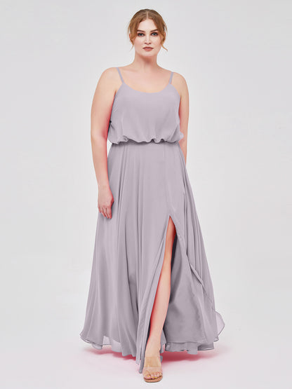 Spaghetti Strap Scoop Chiffon Dresses with Slit Dusk Plus Size