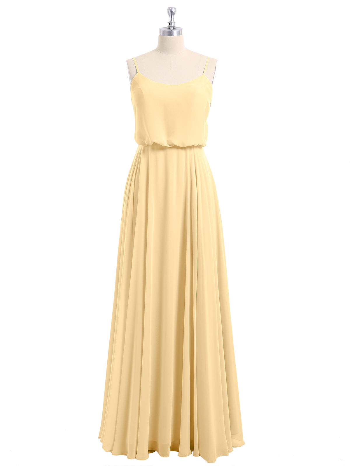 • The spaghetti strap floor-length dress has a cute shallow round neck.