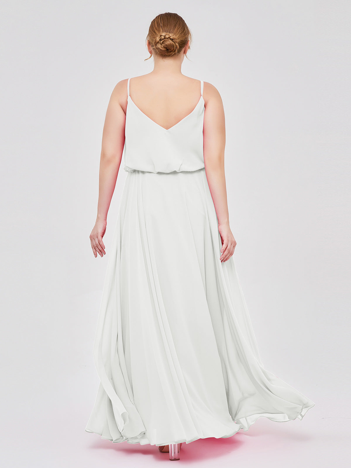 Spaghetti Strap Scoop Chiffon Dresses with Slit Ivory Plus Size