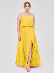 Spaghetti Strap Scoop Chiffon Dresses with Slit Marigold Plus Size