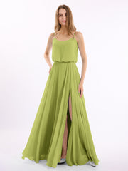 Spaghetti Strap Scoop Chiffon Dresses with Slit Clover
