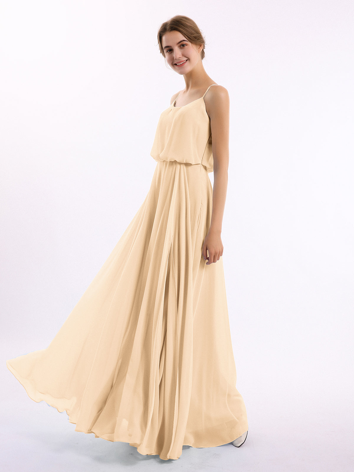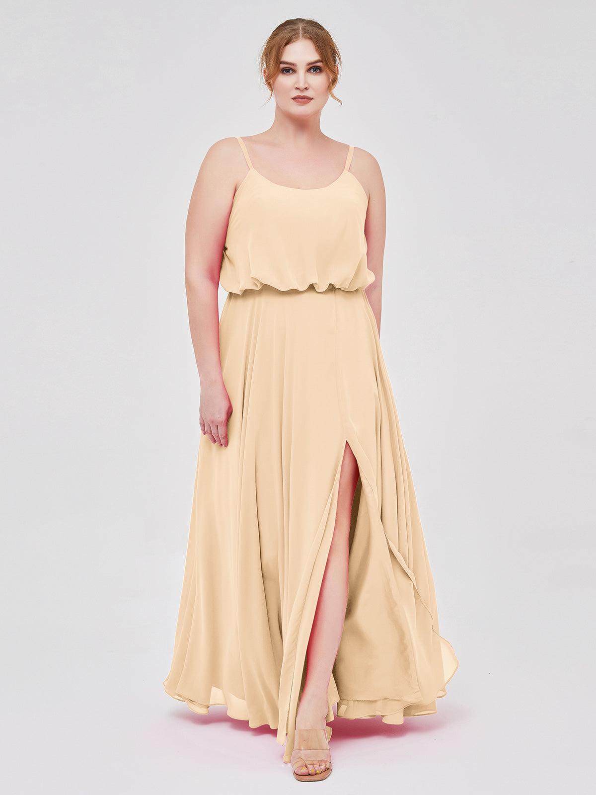 Spaghetti Strap Scoop Chiffon Dresses with Slit Peach