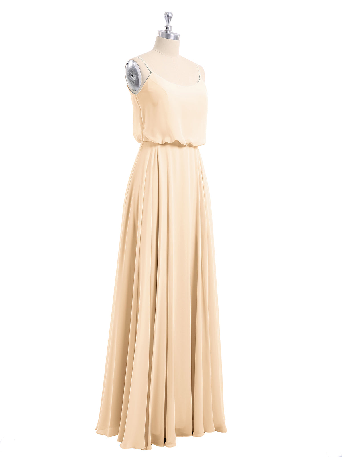 • The spaghetti strap floor-length dress has a cute shallow round neck.