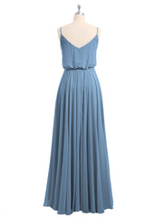 Spaghetti Strap Scoop Chiffon Dresses with Slit Slate Blue