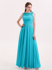 Illusion Neck Chiffon and Lace Long Dresses-Jade
