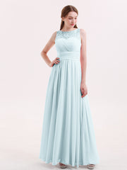 Illusion Neck Chiffon and Lace Long Dresses-Mist
