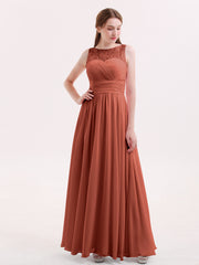 Illusion Neck Chiffon and Lace Long Dresses-Rust