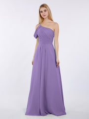 One Shoulder Chiffon Long Bridesmaid Gowns-Tahiti