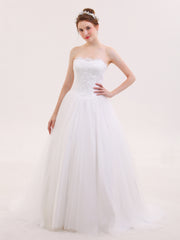 Tulle with Appliqued Strapless Bridal Dress-Champagne