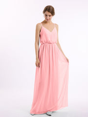 V-neck Spaghetti Strap Chiffon Bridesmaid Dresses-Flamingo