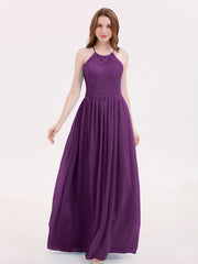 Illusion Neck Lace and Chiffon Maxi Gowns-Grape