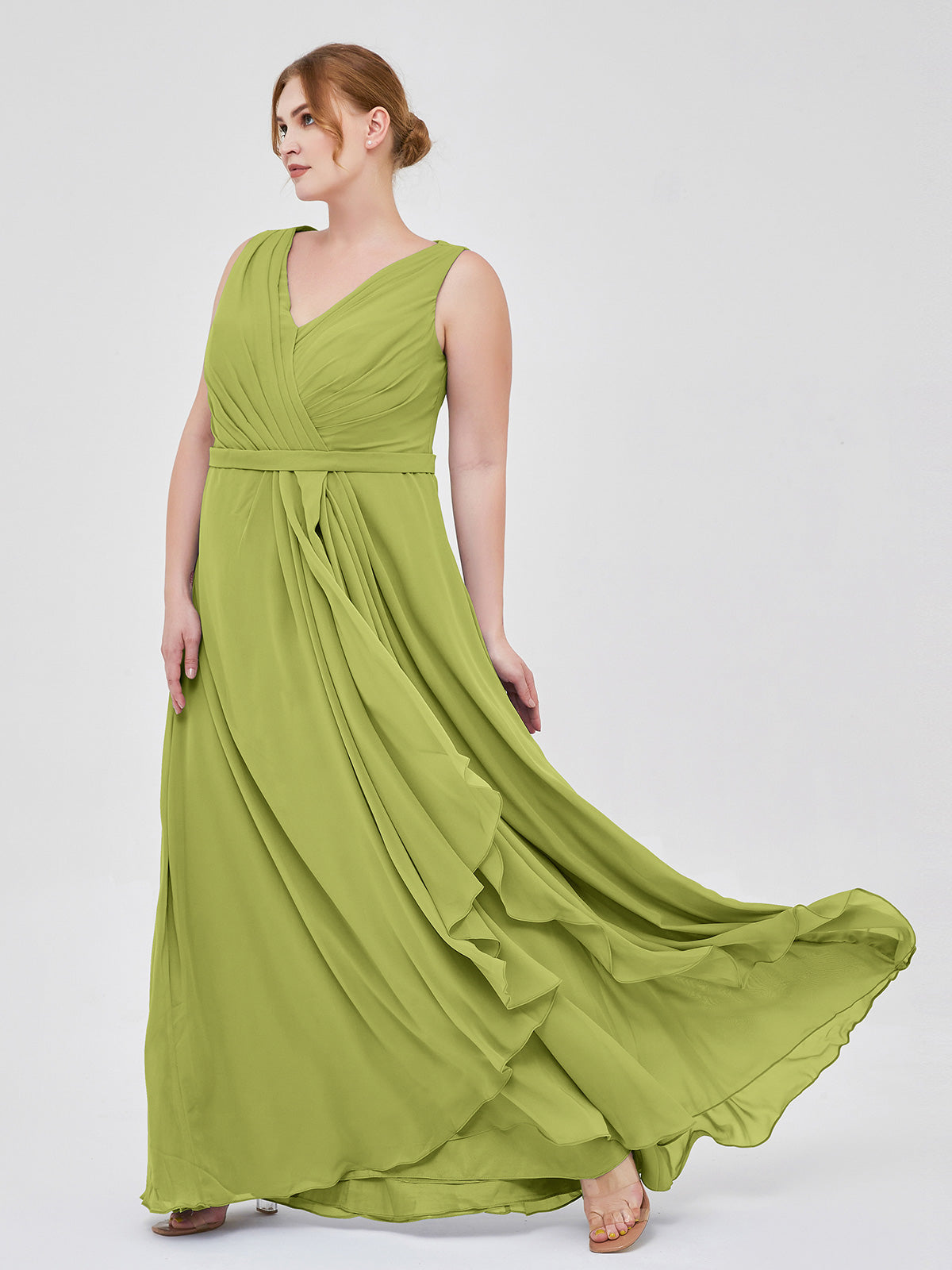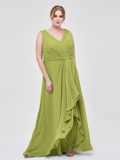 V-neck Chiffon Bridesmaid Gown with Cascade Skirt Clover Plus Size