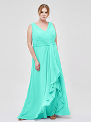 V-neck Chiffon Bridesmaid Gown with Cascade Skirt Spa Plus Size