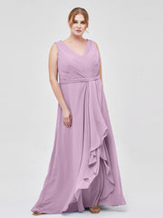 V-neck Chiffon Bridesmaid Gown with Cascade Skirt Wisteria Plus Size