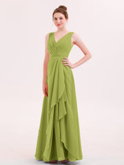V-neck Chiffon Bridesmaid Gown with Cascade Skirt Clover
