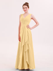 V-neck Chiffon Bridesmaid Gown with Cascade Skirt Gold