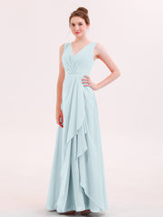 V-neck Chiffon Bridesmaid Gown with Cascade Skirt Mist
